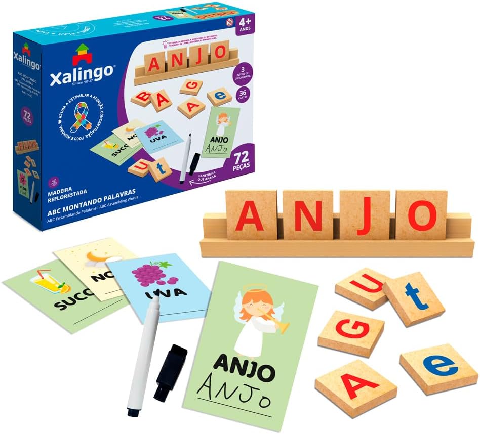 Jogo ABC Montando Palavras - Xalingo Jogo ABC Montando Palavras - Xalingo O Jogo ABC Montando Palavras da Xalingo é a escolha ideal para estimular a concentração, a criatividade, a paciência e o autocontrole das crianças. Com 72 peças, este jogo educativo é perfeito para ajudar no desenvolvimento da escrita e da leitura de forma descontraída e interativa. Idade recomendada: A partir de 4 anos