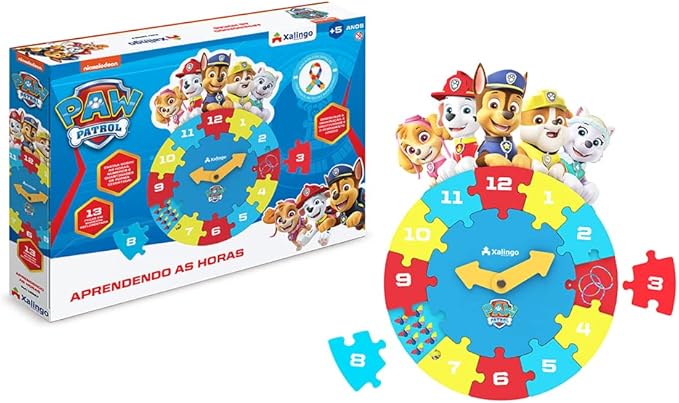 O Quebra-Cabeça Aprendendo as Horas proporciona um aprendizado divertido sobre as horas e números. De forma lúdica e criativa, a criança pode montar e desmontar as peças de cada hora do relógio, associando números e quantidades através de suas ilustrações com a turminha da Patrulha Canina. Contém 01 base do relógio com ponteiros, 12 peças de encaixe em madeira reflorestada e 01 rebite metálico. Indicado para crianças a partir de 5 anos.