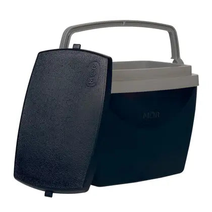Este é o menor modelo da linha, conhecido como "cooler pessoal". Ele é extremamente portátil e projetado para situações onde o volume de carga deve ser mínimo. A combinação de cores escuras (Preto/Cinza) dá a ele um ar mais discreto e moderno, sendo muito utilizado não apenas para lazer, mas para o dia a dia de trabalho.