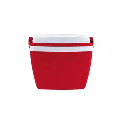 Este é o modelo mais compacto da categoria, popularmente conhecido como "cooler pessoal" ou "lancheira térmica". As imagens mostram a linha moderna com corpo colorido (Vermelho, Verde ou Azul) e a tampa/alça em preto, o que confere um visual mais robusto e menos propensa a sujeira visível do que os modelos tradicionais brancos.