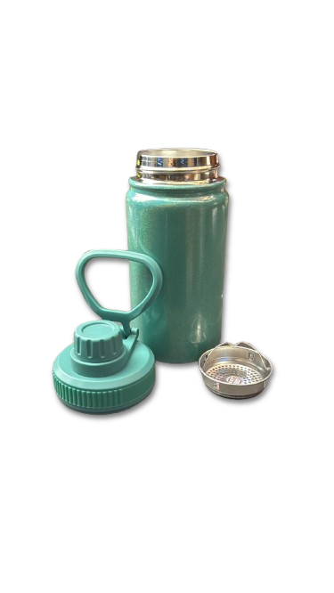 • Tampa Ergonômica com Alça: A tampa rosqueável possui vedação total contra vazamentos e uma alça integrada que facilita o transporte e permite pendurá-la onde precisar.