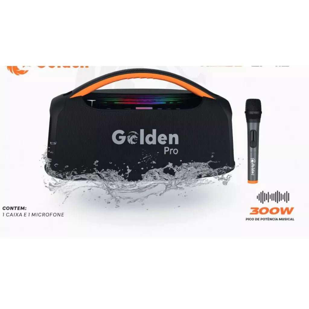 Descubra a potência e versatilidade da CAIXA DE SOM 300W C/1 MICROFONE RGB À PROVA D’ÁGUA GOLDEN PRO GP-112!