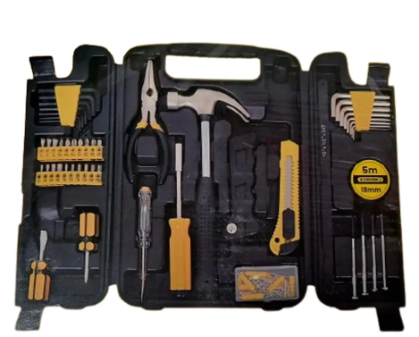 Este é um Jogo de Ferramentas Completo, ideal para uso doméstico, pequenos reparos e manutenção geral. O kit é organizado em uma maleta de transporte robusta que mantém cada peça em seu devido lugar.
